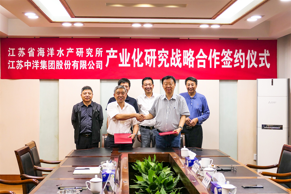 9月15日,江苏省海洋水产研究所与中洋集团正式签署战略合作协议。江苏省海洋水产研究所所长陆勤勤、副所长张志勇,中洋集团总裁钱晓明、常务副总裁朱永祥等出席签约仪式。