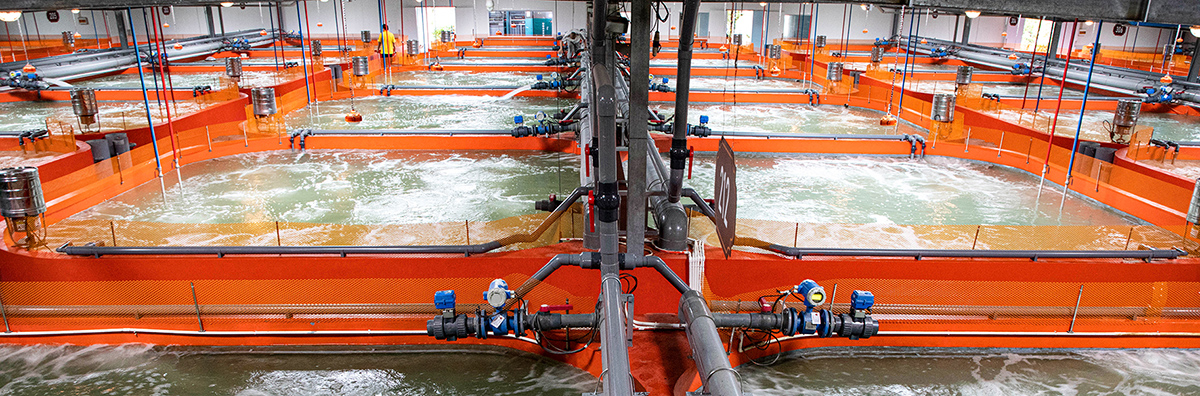中洋渔业发展集约化循环水生态养殖已近三十年。第一代系统为1994年从丹麦引进的两套全封闭集约化循环水养殖系统,当时主要为养殖欧洲鳗引进,第一代系统容量小,专业性强,且全部靠动力完成整个水循环系统运行,在中国高电价背景下使用相对能耗高,性价比低。引进之后中洋对系统进行了多轮自主技术升级改造,并改良为通用型养殖系统,形成了中洋渔业第一代集约化循环水生态养殖系统原形。2012年,中洋渔业与中国水科院黄海所联合,研发了第2代集约化循环水生态养殖系统,相比1代,2代系统容量更大,产能加大,并实现了部分设备设施化,系统节能和水循环利用率提高,整个系统的集约化、生态化、标准化发展水平提升,并加入物流网技术,实现了系统的智能化发展。随着中洋设施渔业技术不断进步,2014年,中洋渔业再次与中国水科院黄海所联合,叠代升级研发了第3代集约化循环水生态养殖系统,进一步提升集约化设施渔业“高效、智能、生态”养殖功能,水循环利用率达到98%,节约能源达到70%,养殖单位产量最高可达每立方米100kg。