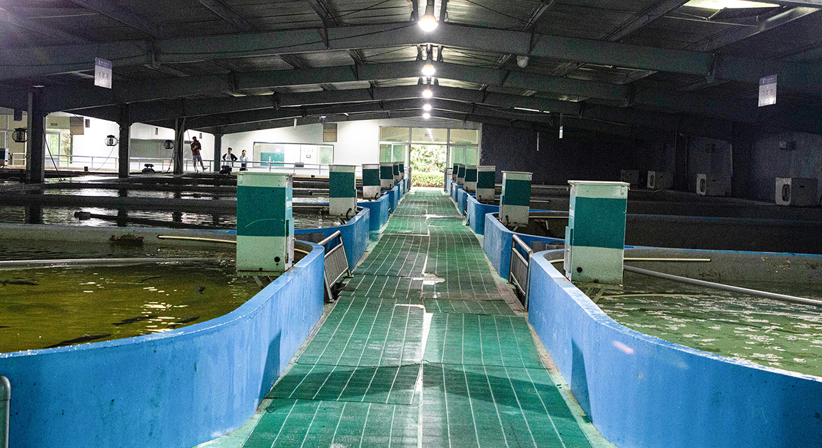 近日,代表中国现代设施渔业集约化循环水养殖系统领先水平的中洋渔业第3代集约化循环水生态养殖系统升级完成,进入了系统运行调节与培水阶段,即将投入工厂化南美白对虾养殖。走进充满现代化气息和亮丽、色彩新颖的养殖车间,这里宛如“闲云流水”现代化的工业化生产线,整个设施的水循环、水净化与养殖系统均为自动化控制,系统可根据养殖设定参数,自动开启电磁阀、传感器、增氧机、投饵机,成为高度智能化的无人车间。而且此次中洋全新升级的第3代集约化循环水系统,是着力建设的是以生态健康养殖为主的现代设施渔业,充分彰显设施渔业“智能、绿色、节能”理念,推进工厂化养殖设施和装备智能化升级,高度集约化、生态化、智能化、标准化,高质量节水、节能、增容、增值,是当前推进设施渔业、智慧渔业、提质增效,推进中国式现代化渔业新实践的最新成果。
